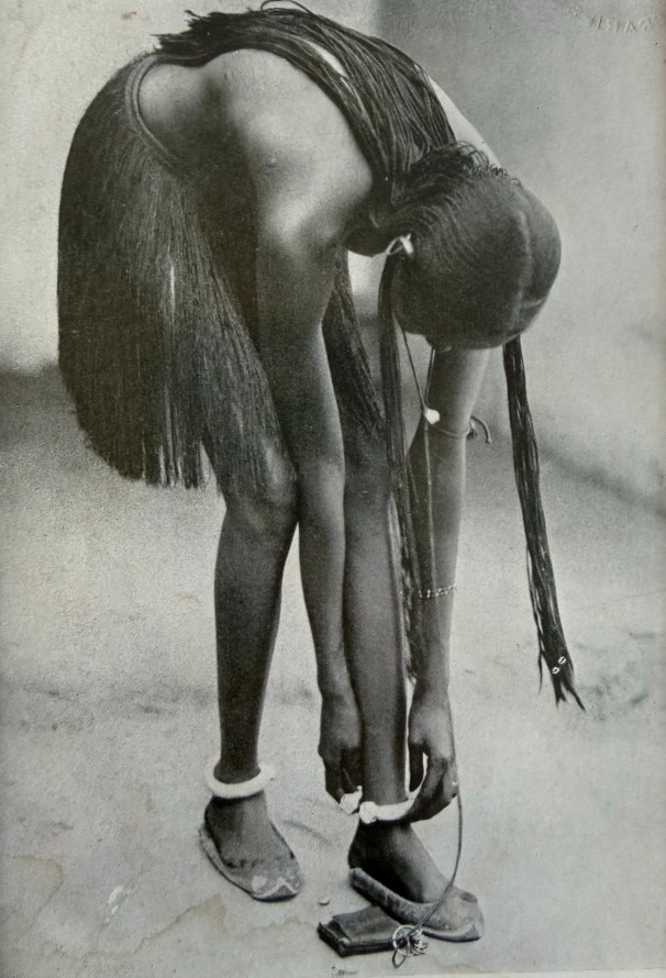 Above left, colonial-era photographs of young women and girls wearing the mahfaza (widely reproduced on Pinterest). Upper right, exhibits of Sudanese leatherwork at the Sudan Ethnographic Museum, pre-war. Right, a young women wears with pride her mahfaza over he rahat skirt.